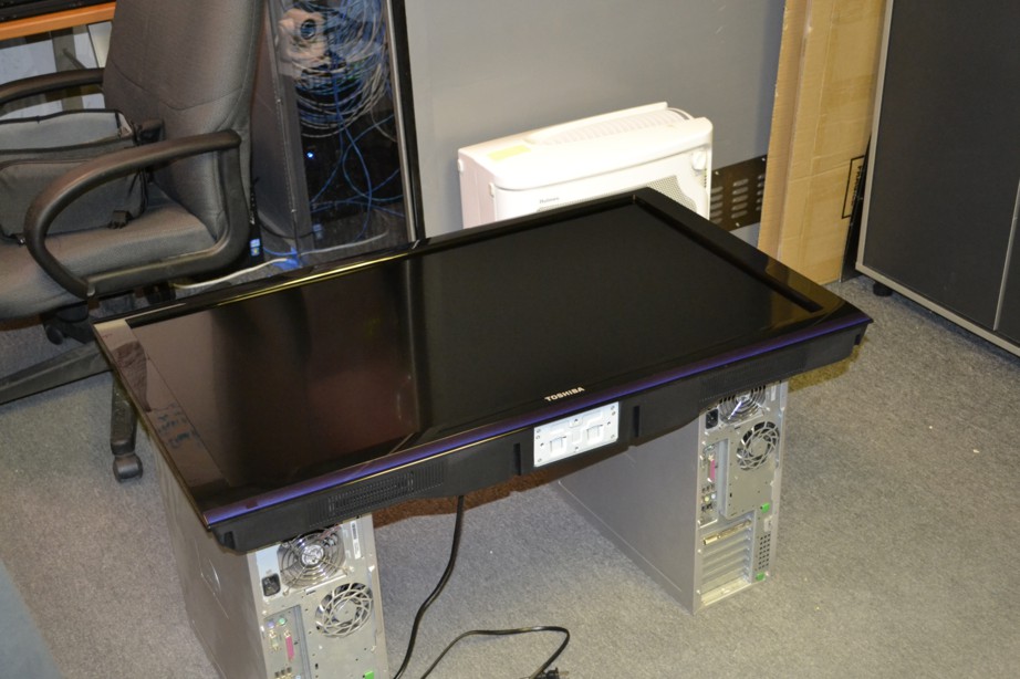 This page shows how to mount a PQ Labs Infrared Overlay Touch Panel to an LCD TV. I used a Toshiba 40E210U 40" 1080p LCD TV ($425) With an OmniMount VB100T wall mount ($70)![]()