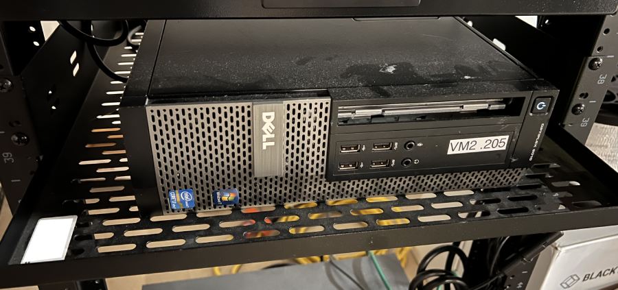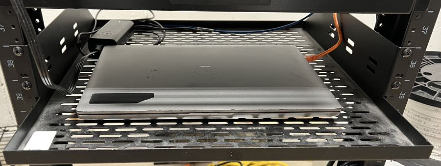 Mounted on the network rack the comparison is more apparent. You could easily stack several laptops where a single desktop would fit.